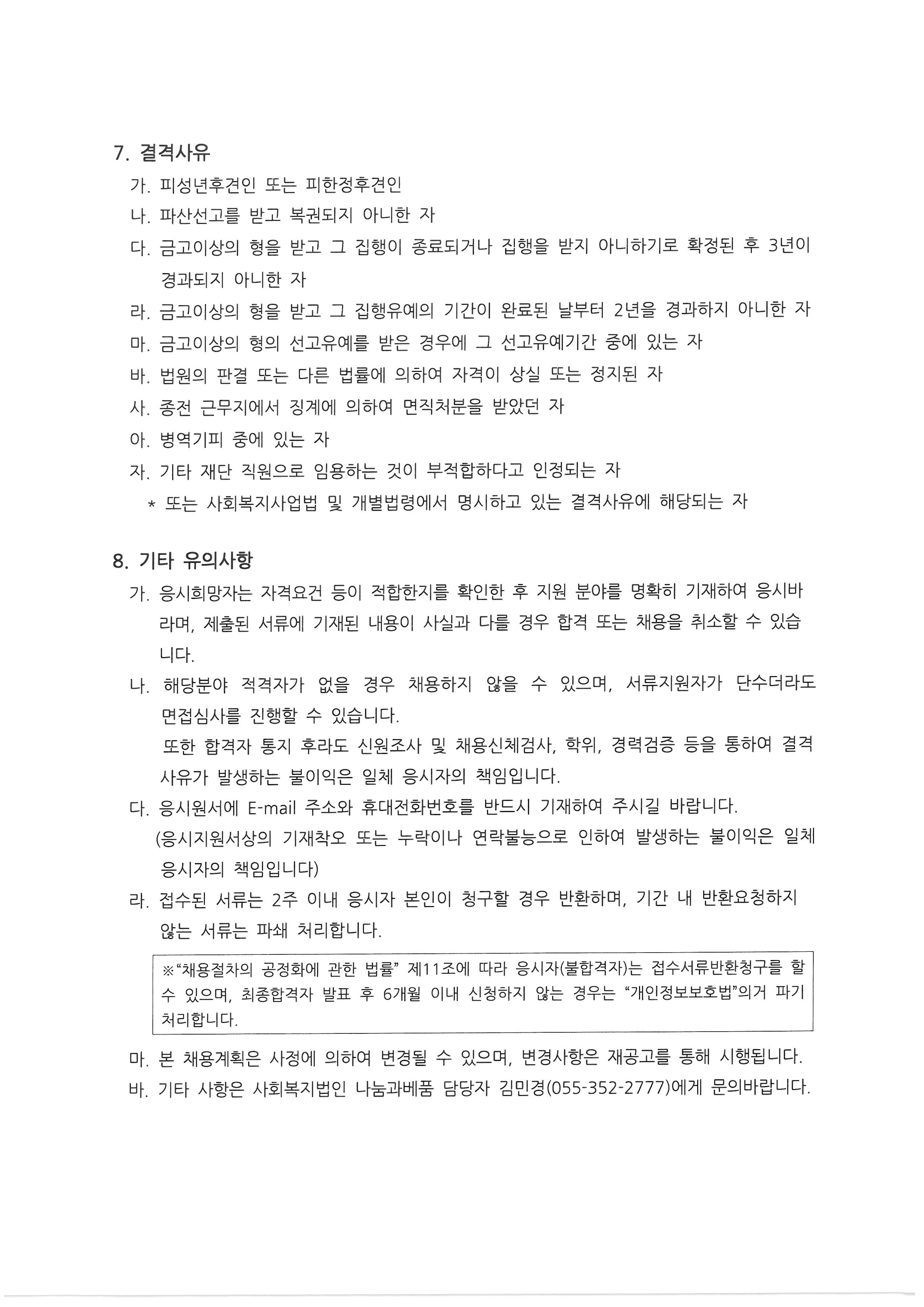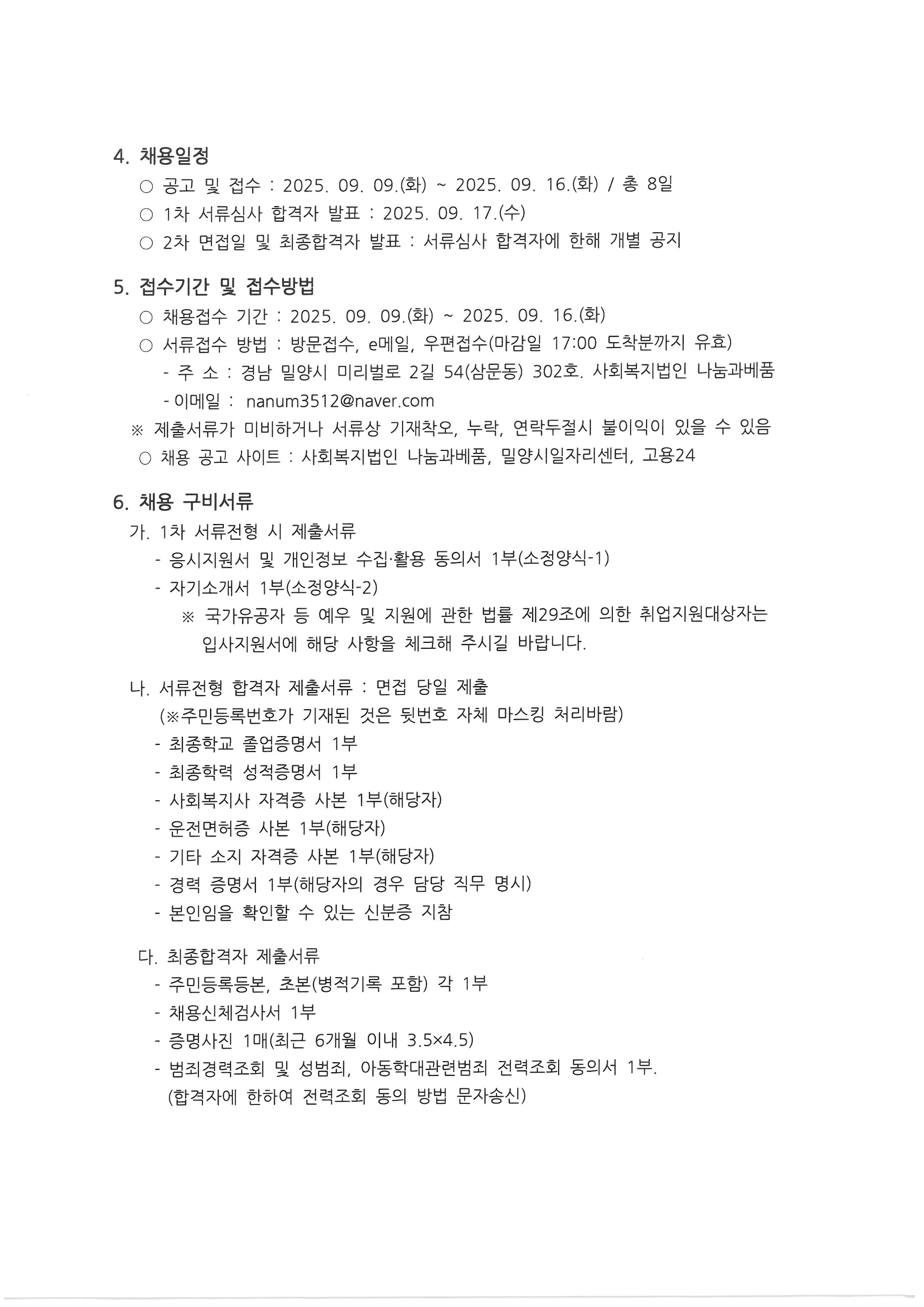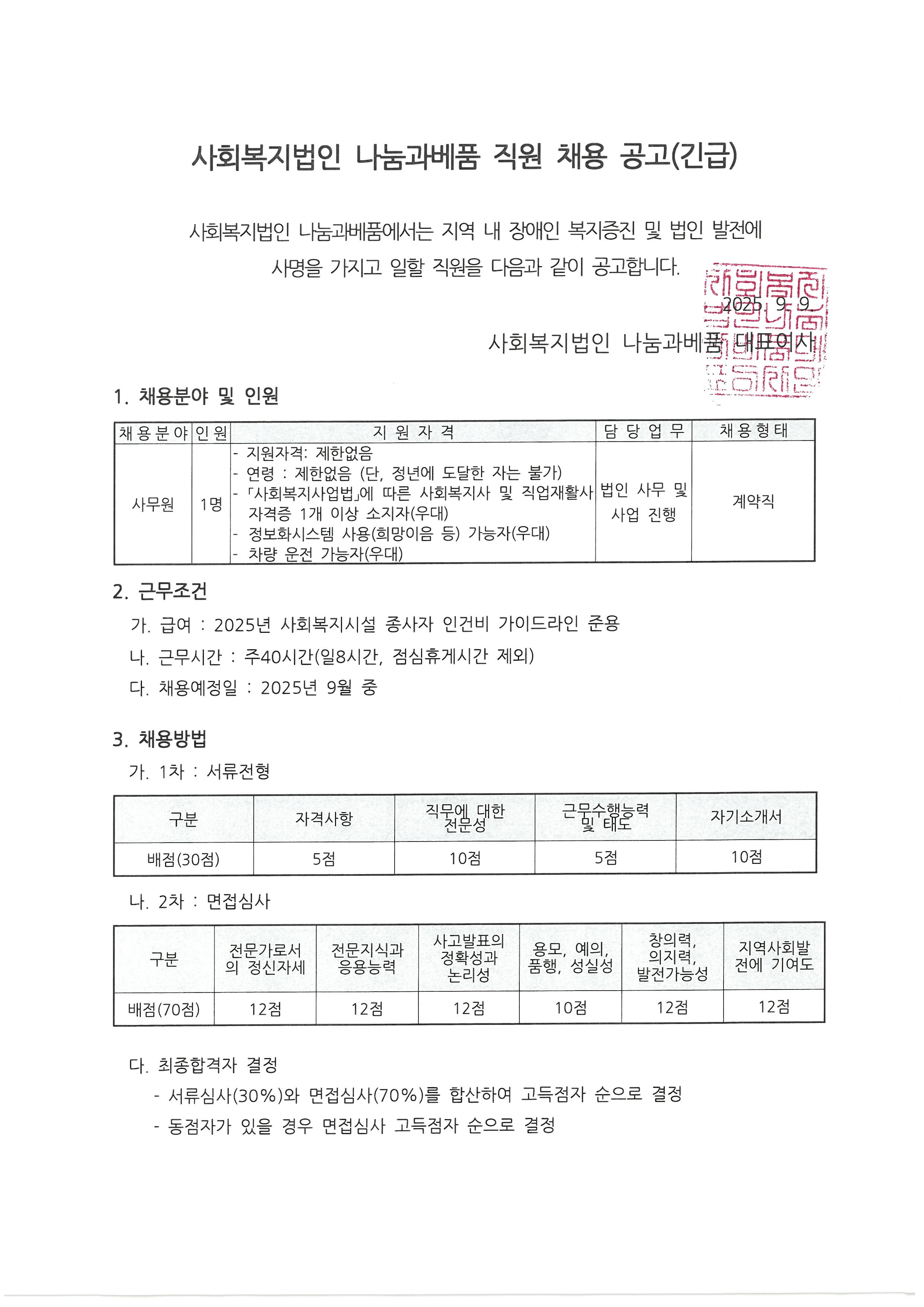 사회복지법인 나눔과베품 직원 채용 공고(긴급)