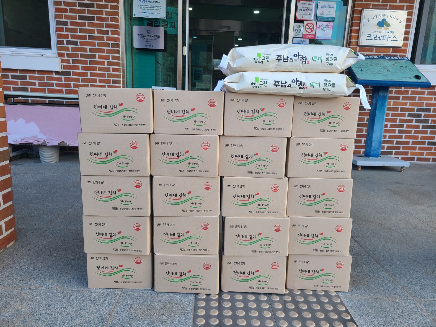 경상남도사회복지협의회에서 기프트박스 나눔사업의 일환으로 김치 5kg 20박스, 쌀 10kg 2포대 후원 받았습니다.